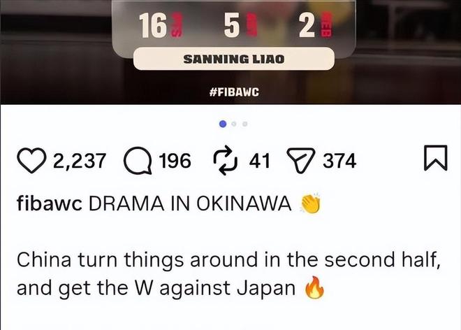 賽後數小時,國際籃聯官方X賬號發布英文戰報,標題赫然寫著:“ChinawithasneakywinoverJapan”。其中“sneaky”一詞帶有強烈貶義色彩,暗指勝利手段隱秘、結果存疑,此舉瞬間引爆中國球迷情緒,數萬條評論齊刷刷要求其刪除原文並公開致歉。