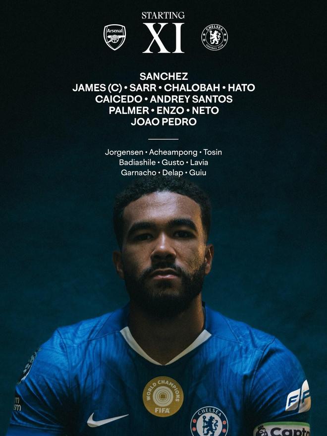 切爾西首發:1-羅伯特-桑切斯、24-裏斯-詹姆斯、19-馬馬杜-薩爾、23-特雷沃-查洛巴、21-哈托、17-安德雷-桑托斯、25-莫伊塞斯-凱塞多、7-佩德羅-內托、8-恩佐-費爾南德斯、10-帕爾默、20-若昂-佩德羅